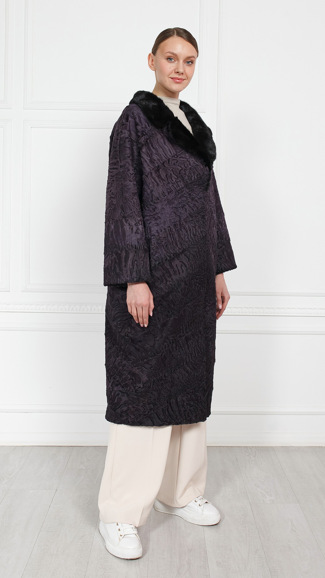 Шуба из свакары, отделка норка