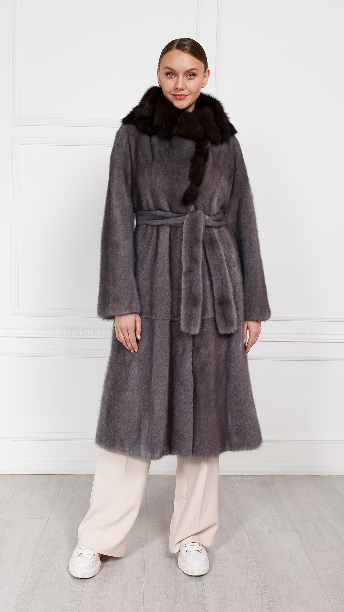 Шуба из меха норки, отделка соболь